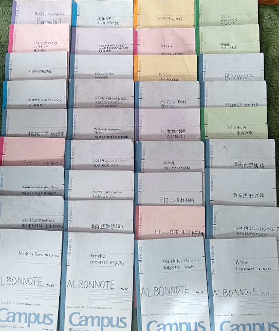 F1ってなんでこんなに速いんだろう・・・という好奇心から気付いた時にはこんなにも大量のノートを書きあげていました。