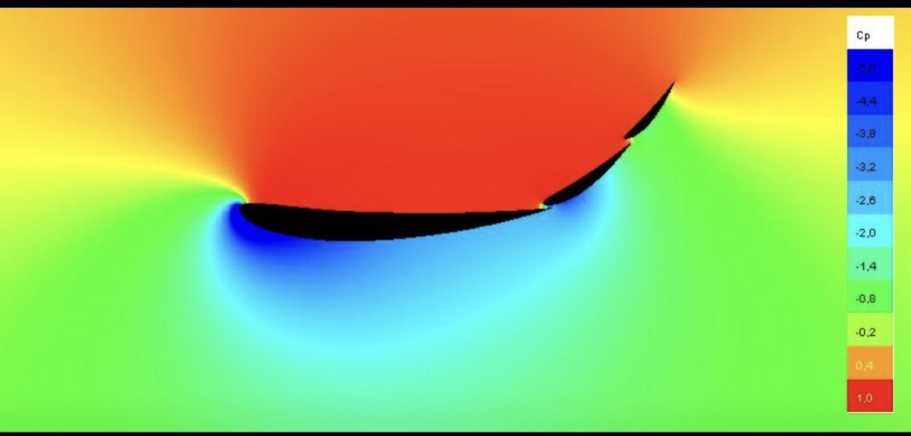 これによってフラップ上面の流速が遅くなり正圧が発生。